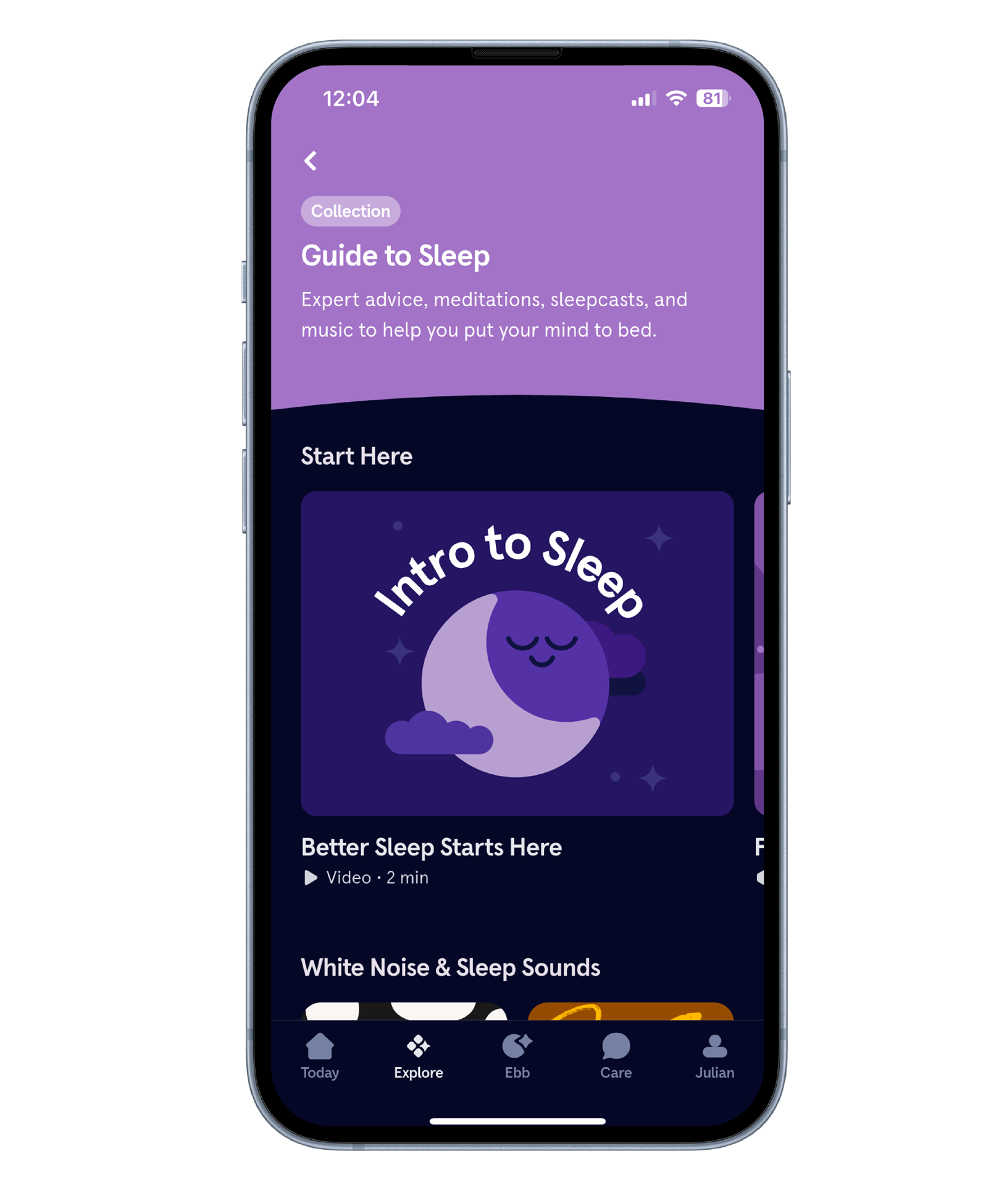 Sleep challenges are common and many people use Headspace as a sleep support tool. The app features bedtime meditations, calming soundscapes, and “sleepcasts” designed to help quiet the mind and make it easier to fall – and stay – asleep.